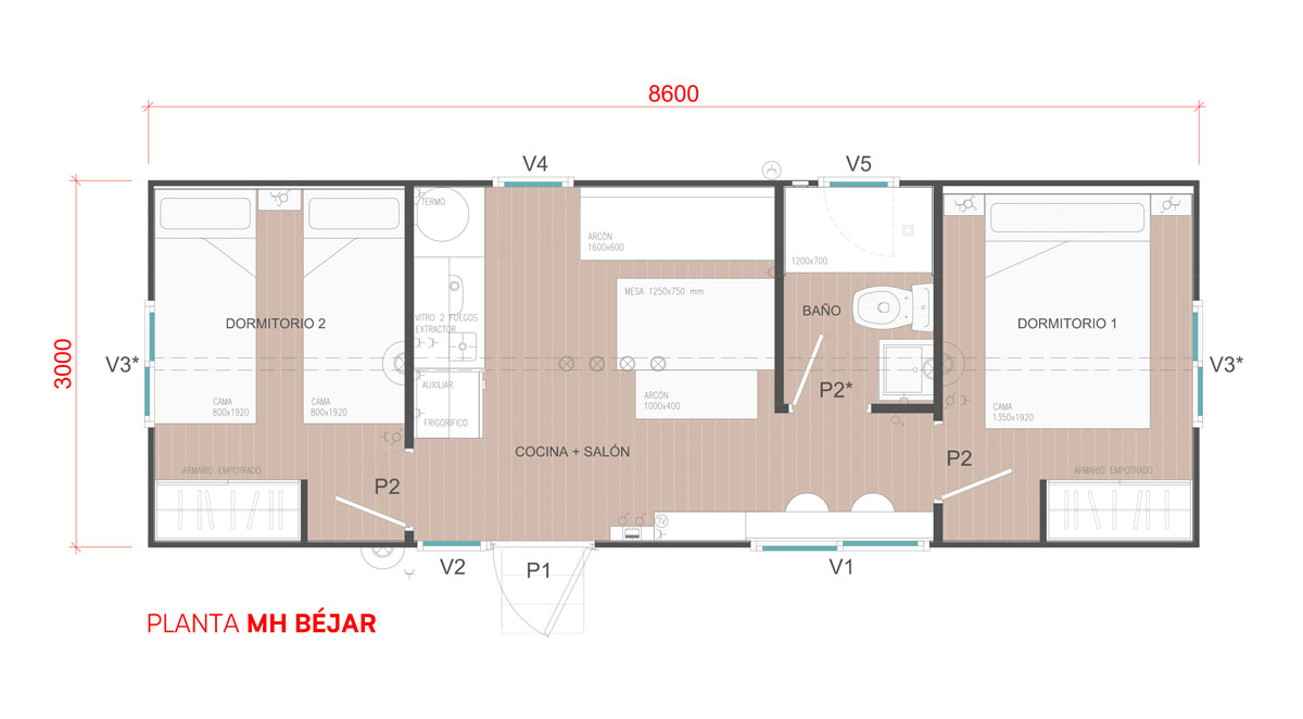 8,6 x 3,0 m hasta 4 personas