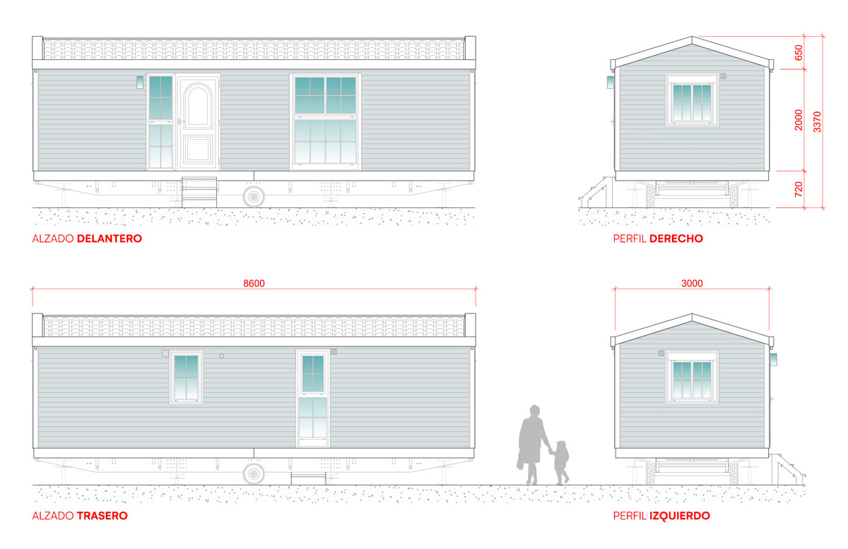 A PANELAIS PRODUCCIONES fornece ao cliente os diferentes elementos de nivelamento do MOBILHOME, tais como eixos, pernas telescópicas, tensores, etc. A escada de acesso está incluída.